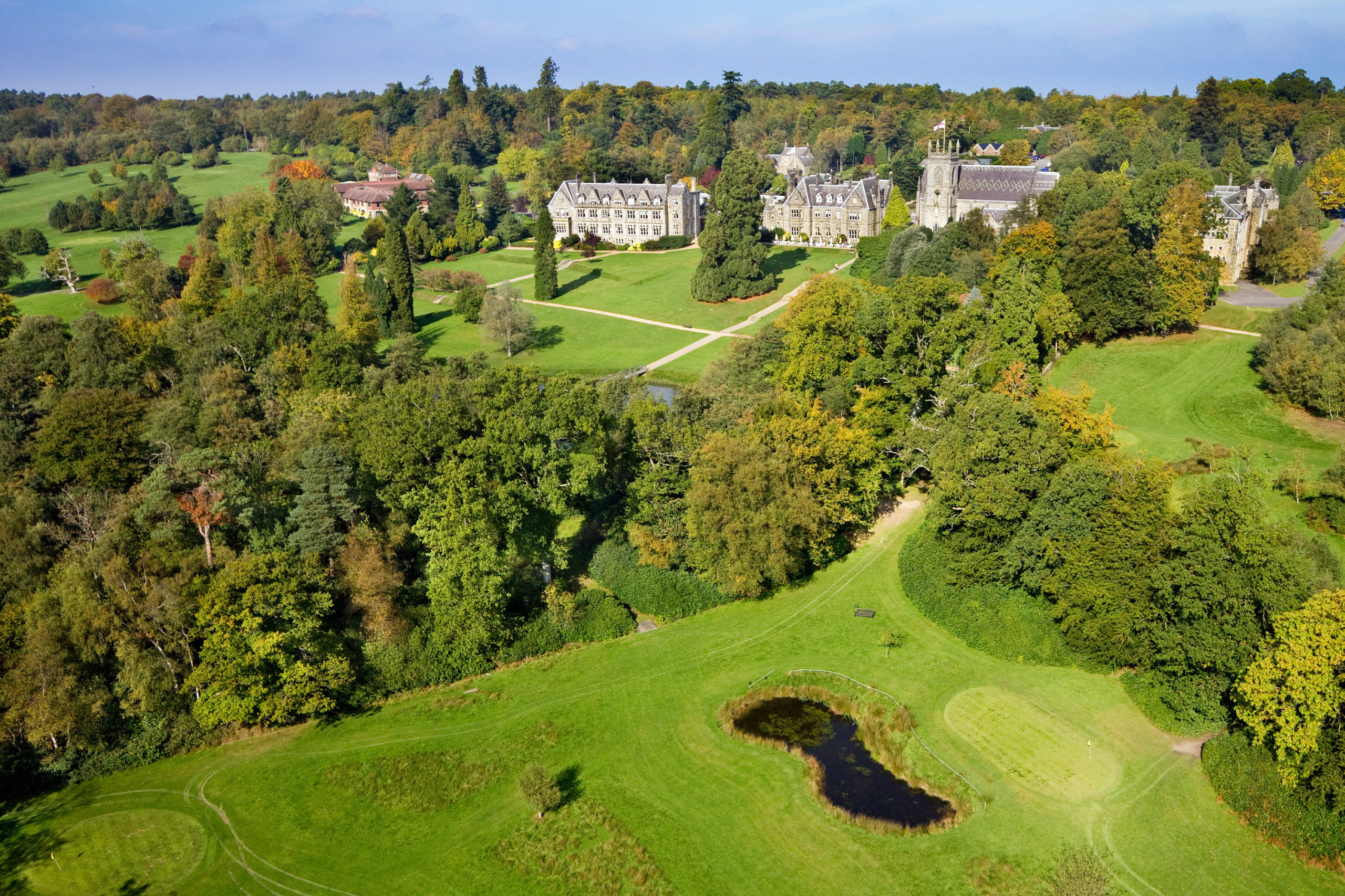 Encircling the club’s 300 acre Buckinghamshire parkland estate, the famous 27 hole Championship golf course is, undisputedly, one of the finest parkland courses in the country. Created in 1908 by eminent golf architect Harry Colt, the Stoke Park course has been the inspiration for many of the world’s most famous holes, including Augusta’s infamous 16th.