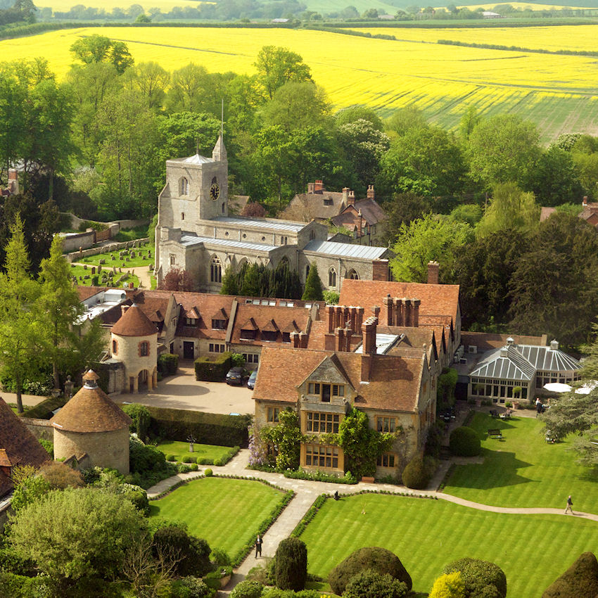 Surrounded by lawns, flower borders and orchards, it enjoys an idyllic, typically English setting. Beyond the eye-catching displays are two acres of kitchen gardens providing ultra-fresh, organic produce of 90 types of vegetable and 70 varieties of herb. The wine cellar holds around 1,000 different wines from around the world.
