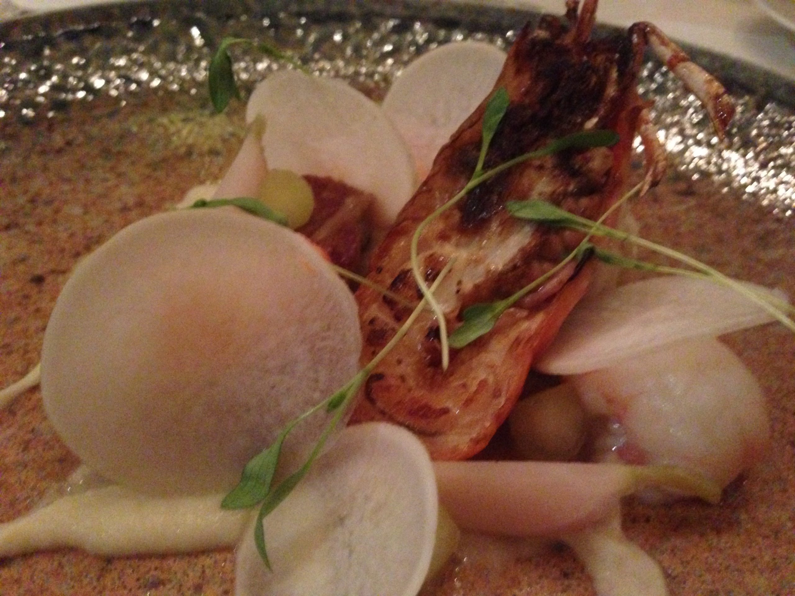Having settled ourselves back in the restaurant in front of the log fire we turned to the menu which offers fish and vegetarian options alongside the delights of the grill. For starters Duck Liver – Whipped Livers with Hazelnut Crumble and Toffee Apple was ooed and ahhed over, as was the Langoustine and Mackerel. Veggies can enjoy Parsnip with Walnut Praline and Goats Curd or Homemade Baba Ganoush. The menu is updated frequently to reflect The Estate’s seasonal offerings.