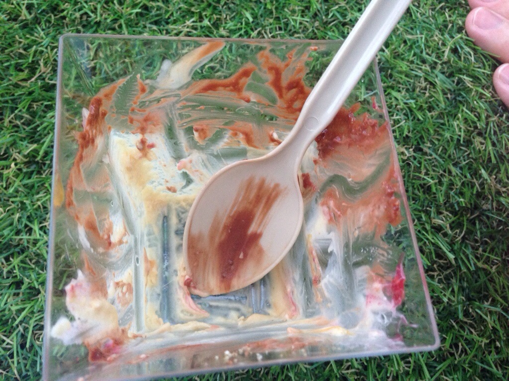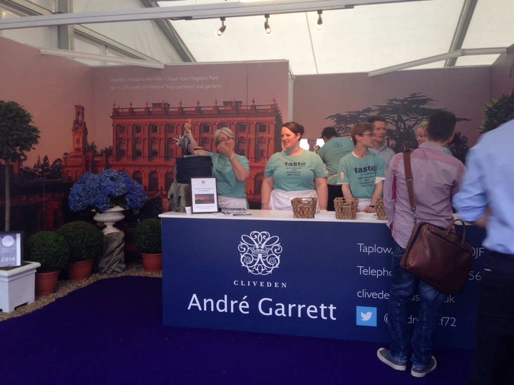 Suitably savored-out we fought our way through the crowds to André Garrett – the wonderful backdrop of Cliveden House lending a touch of country class to the line up. With his trophy proudly displayed we had a quick catch up with André and Cliveden GM, Sue Williams, before diving into the winning pudding – Peanut Butter Parfait, Salted Caramel, Raspberry. As I’ve said before on this blog – whichever genius chef came up with the idea of putting salt with caramel should be sainted. André’s version was executed to perfection and quite frankly its a good job it was the end of the show for us as nothing else was going to follow it.