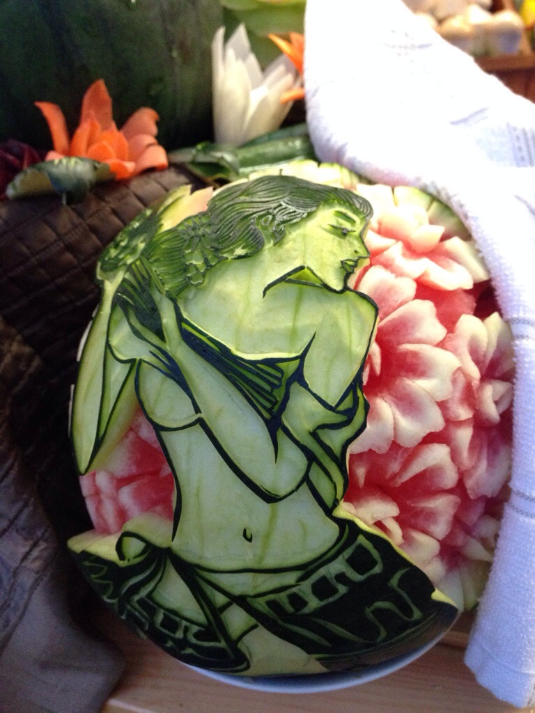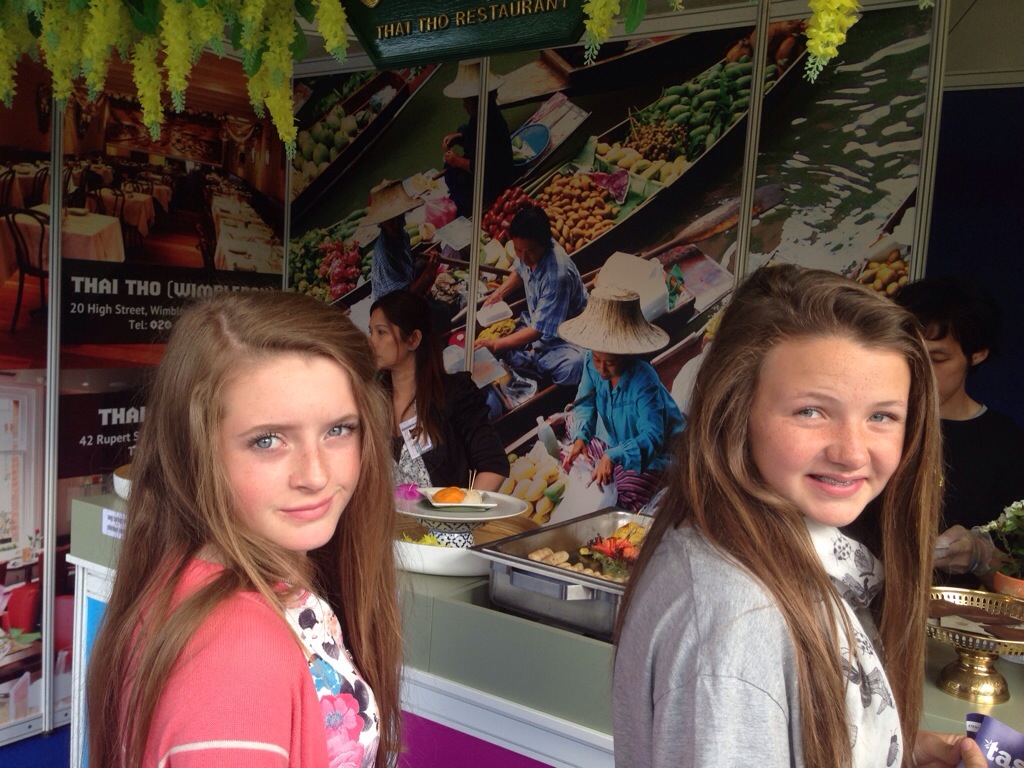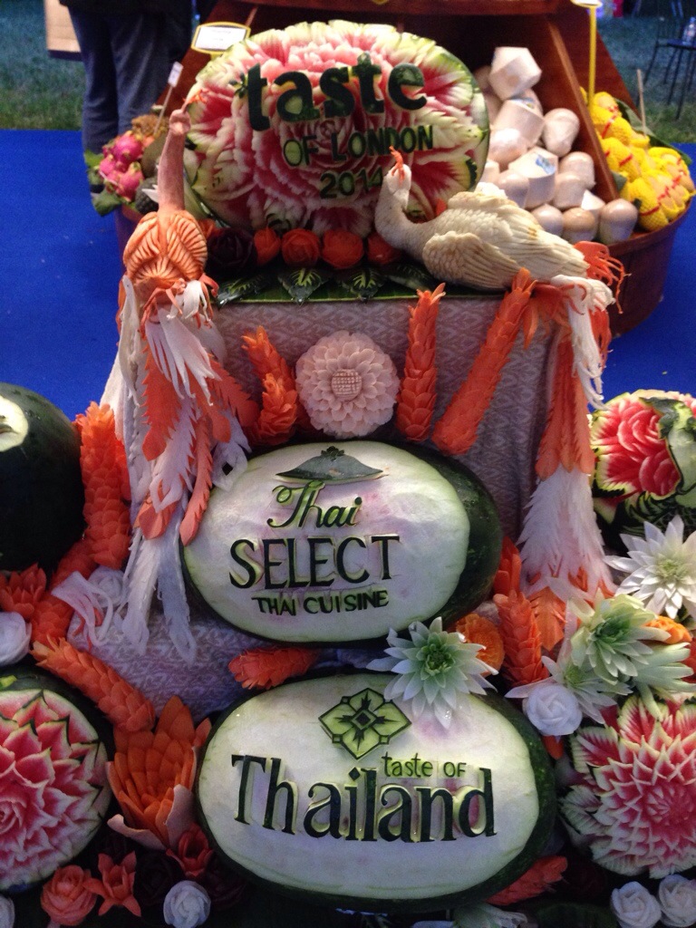 We left the Roblets happily scoffing free noodles in the Taste of Thailand area with its stunning fruit sculptures – such amazing artwork that you’d rather frame than eat! They then went on to eat the Gai Yang Som Tum at Mango Tree – Grilled boneless corn-fed chicken tight marinated in black pepper, garlic and coriander served with papaya salad. This went down very well with one daughter but the other thought it was weird, not being used to eating fruit with chicken, and that it why it is such a good event to take kids to so they can try out all these great new flavours.